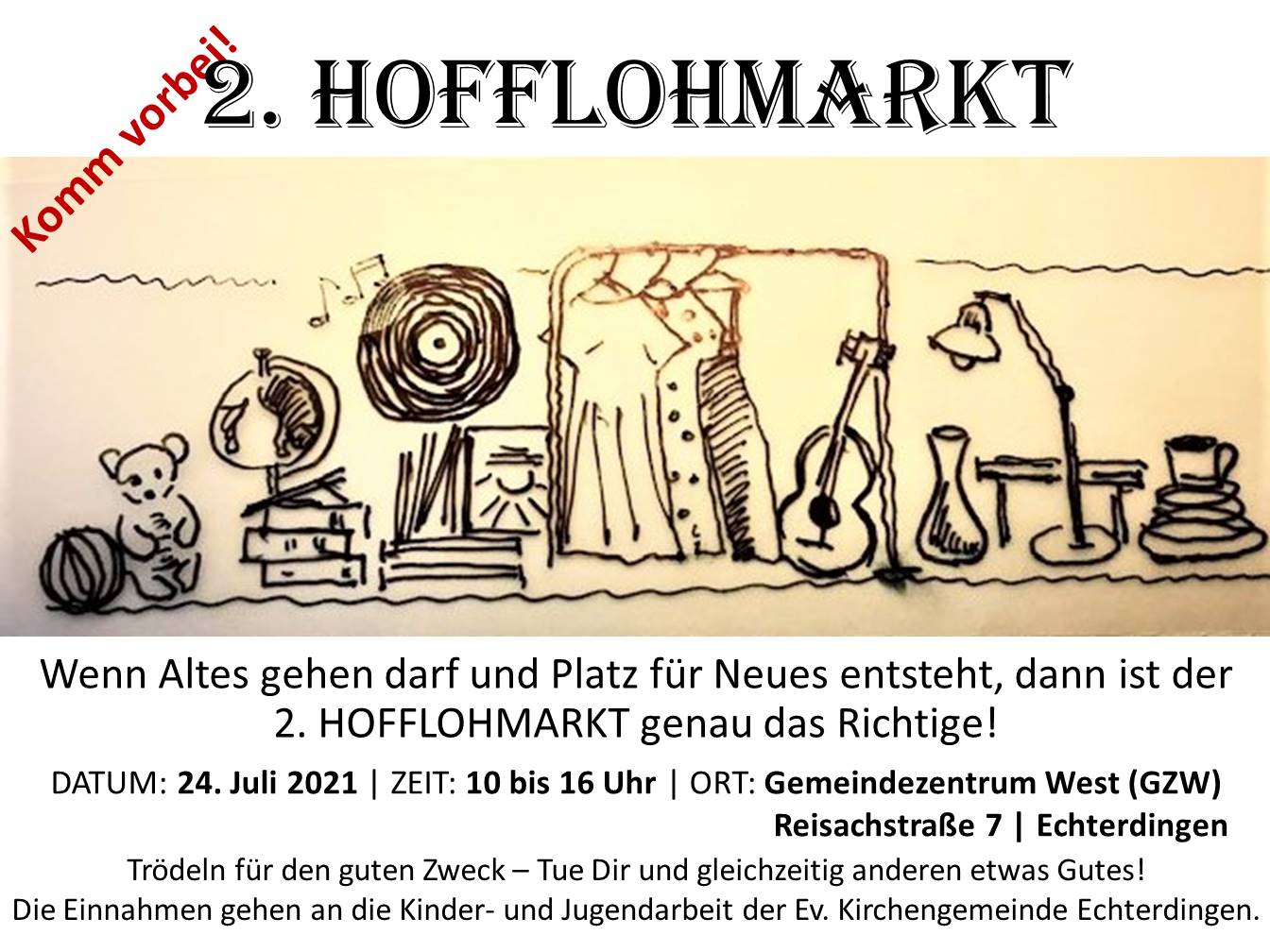 Herzliche Einladung zum Hofflohmarkt am Samstag, 24.07.2021 am ev. Gemeindezentrum West